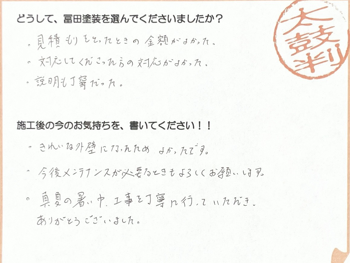真夏の暑い中工事を丁寧に行っていただきありがとうございました。