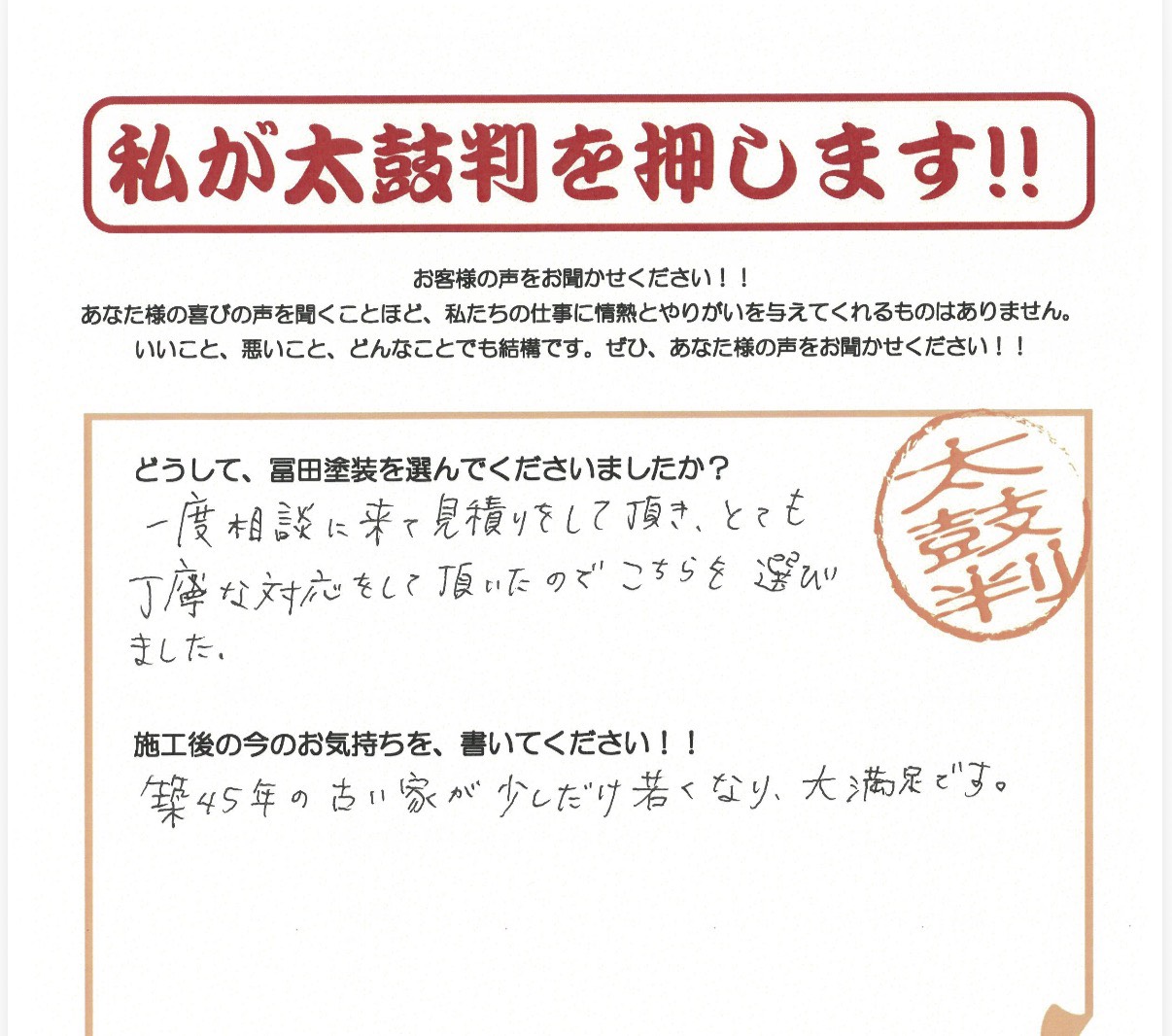 • どうして、冨田塗装を選んでくださいましたか?