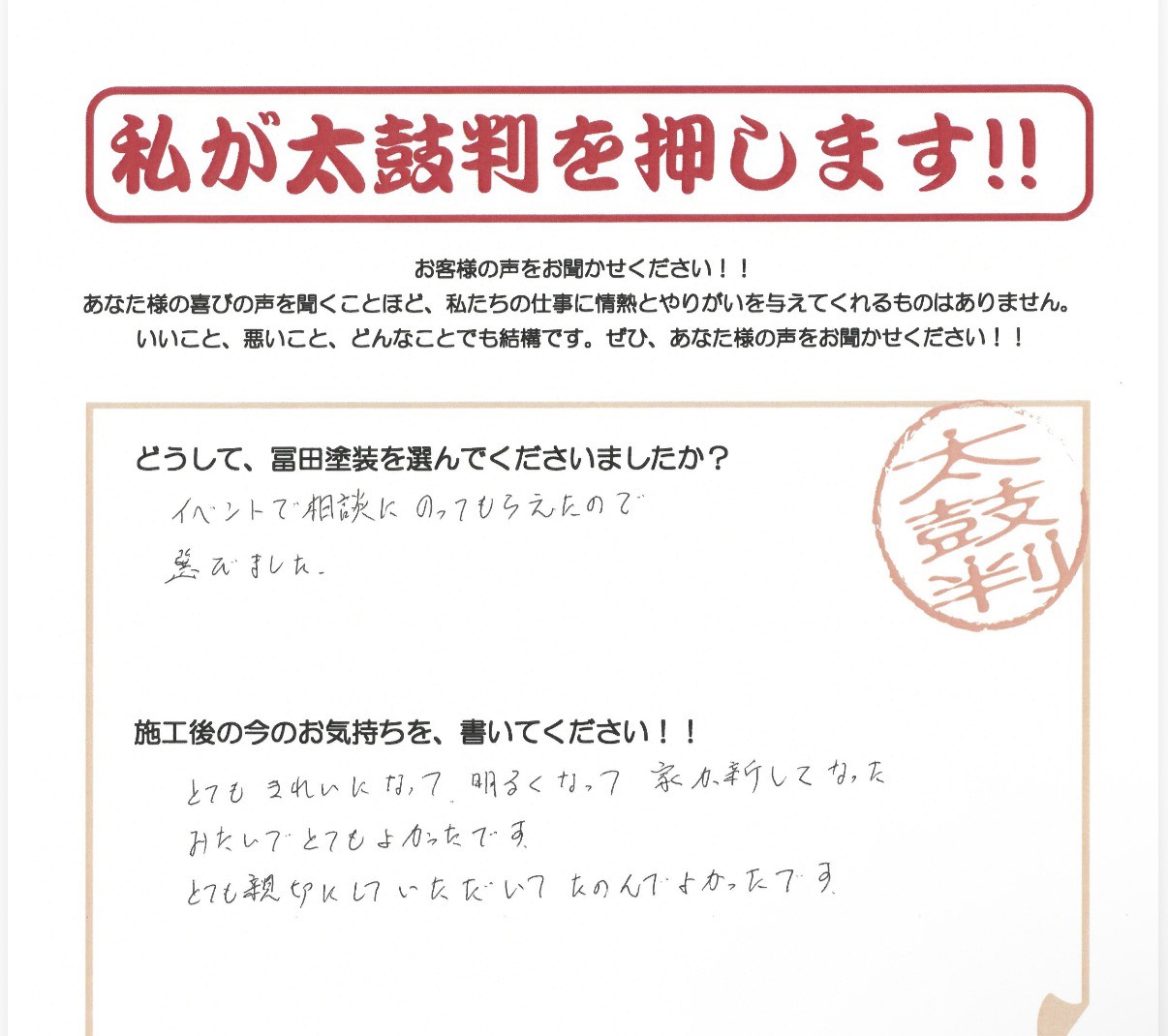 • どうして、冨田塗装を選んでくださいましたか?