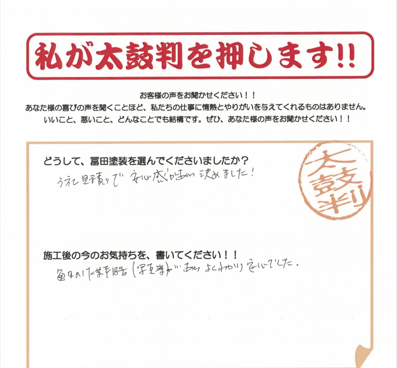 • どうして、冨田塗装を選んでくださいましたか?