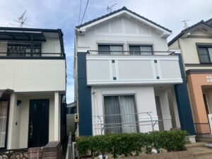外壁1階をウィザードコッパー2階をニュートラルホワイトで塗っていただき、メリハリが付いて自分のイメージ通りの色合いにしていただけたと思います。