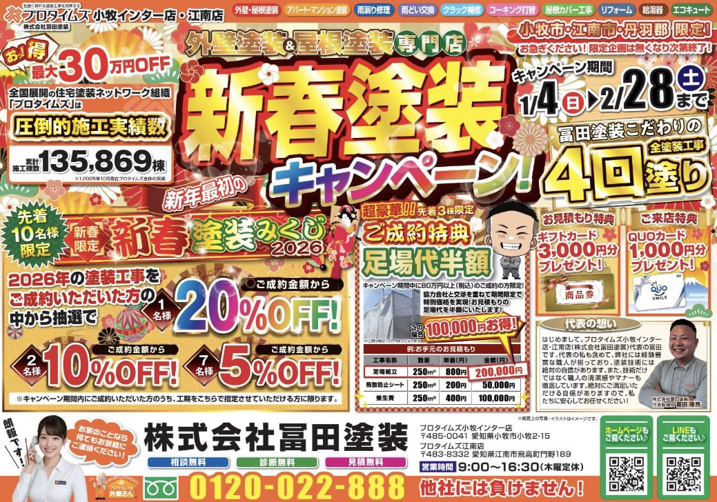 最大30万円OFF!|足場代半額!新春限定おみくじ!新春塗装キャンペーン